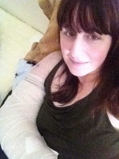 It is day five and my arm is still in a cast. The pain is getting a bit easier to deal with. I’d describe the pain in this way: it feels like my arm/elbow area is caught in a bear trap. No lie. I haven’t felt like doing much except sleep. I was able to shower by covering my cast with a trash bag and sealing it to my arm with duct tape. That worked, no water got in. I keep a notepad and ink pen with my medicine so I can write down when I take it.