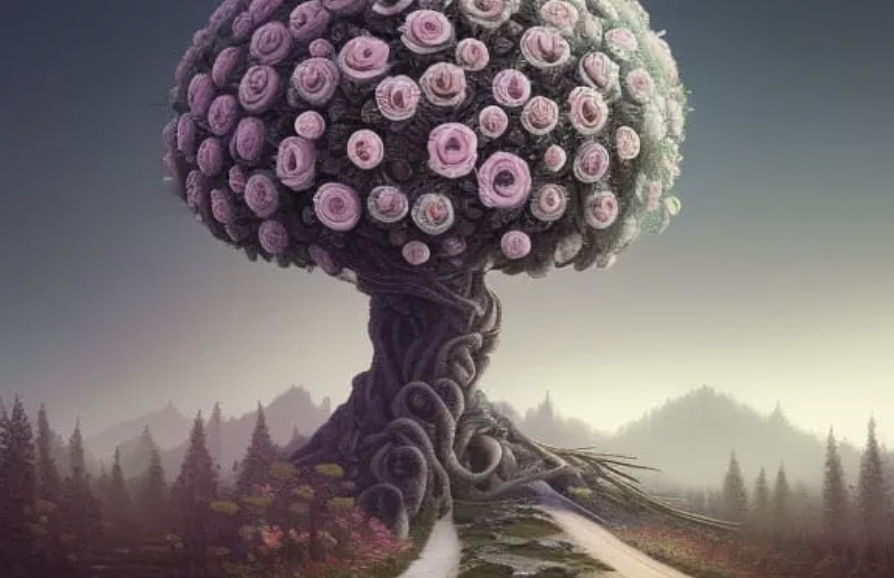 • Hyper detailed Twisted Simon StåLenhag style ephemera branch daisies roses highway, ultra-detailed painting, mega-detailed castlecore portal-tree, fantasy, ritualpunk edges, cinematic stunning, detailed matte painting, deep color, fantastical, complementary colors, fantasy concept art, 8k resolution trending on Artstation Unreal Engine 5