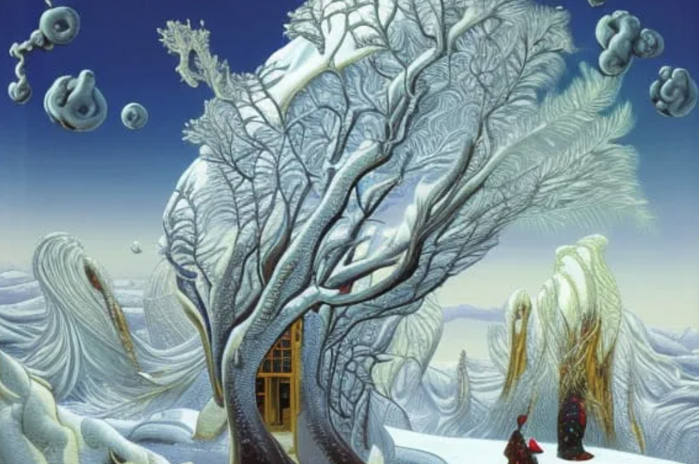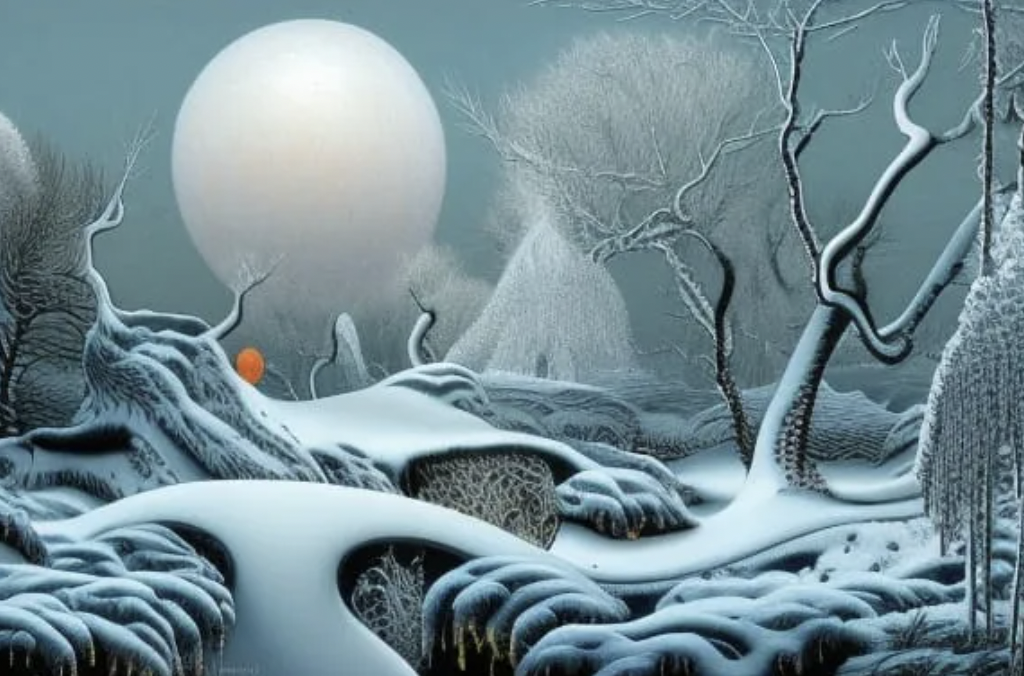 • hyperdetailed winter landscape in the art style of Gillian Wearing, Michael Manning, Gillian Wearing, Aubrey Vincent Beardsley. Glad Tidings, incredibly unusual, hyper-detailed, smooth and clear splash art, inspired by Eric Stanton, Jim Burns, 12k resolution complementary colors, deep color, fantasy concept art, DeviantArt