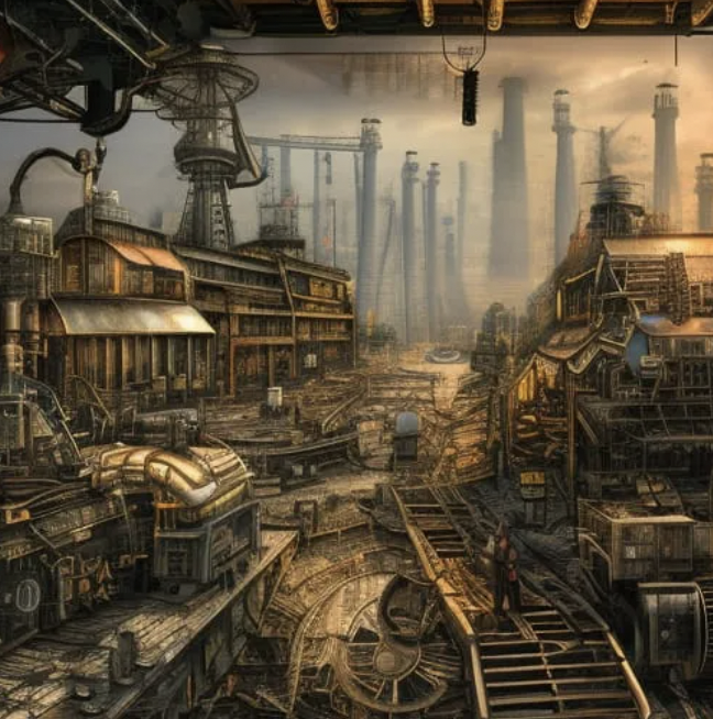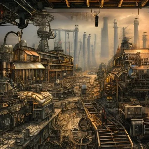 • the most huge and detailed Industrialpunk village ever seen award-winning masterpiece, digital illustration, digital artwork, hyperdetailed digital painting, unique composition, complex, 8k resolution concept art HDR, Ochre Accents Compliment This Refined Interplay Of Colours, dynamic lighting
