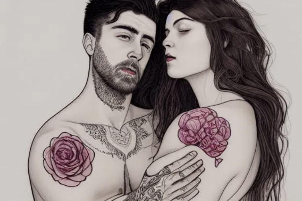 • hyperdetailed beautiful painting in the style of kaethe butcher, a man and woman in a passionate embrace, the sensual couple are tattooed lovers making a spectacle, it’s true love, amazing details, 8k resolution, 8k resolution concept art Dan Witz photorealism oil on canvas twilight artwork
