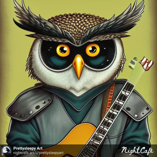 “metallica owl portrait. picturebook-style by Richard Scarry, Louis Rhead & Ashley Wood. adorable professional picture digital-cartoon-illustration. trending on Artstation. Ronnie James Dio style.” Weight:2