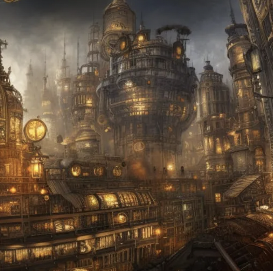 • the most huge and detailed Steampunk City ever seen award-winning masterpiece, digital illustration, digital artwork, hyperdetailed digital painting, unique composition, complex, 8k resolution concept art HDR, Ochre Accents Compliment This Refined Interplay Of Colours, dynamic lighting