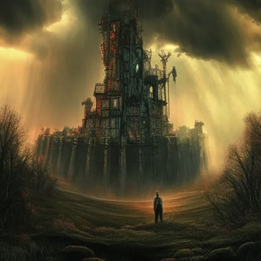 • Biopunk castle in the cloudscape, Deep Colors Art-poster, Monster Thunderstorm, elements of the Mythological, Bizarre Rays from between the clouds, Ultra Detailed Ghostly Backlighting, Epic cinematic brilliant stunning intricate meticulously detailed dramatic atmospheric maximalist digital matte painting