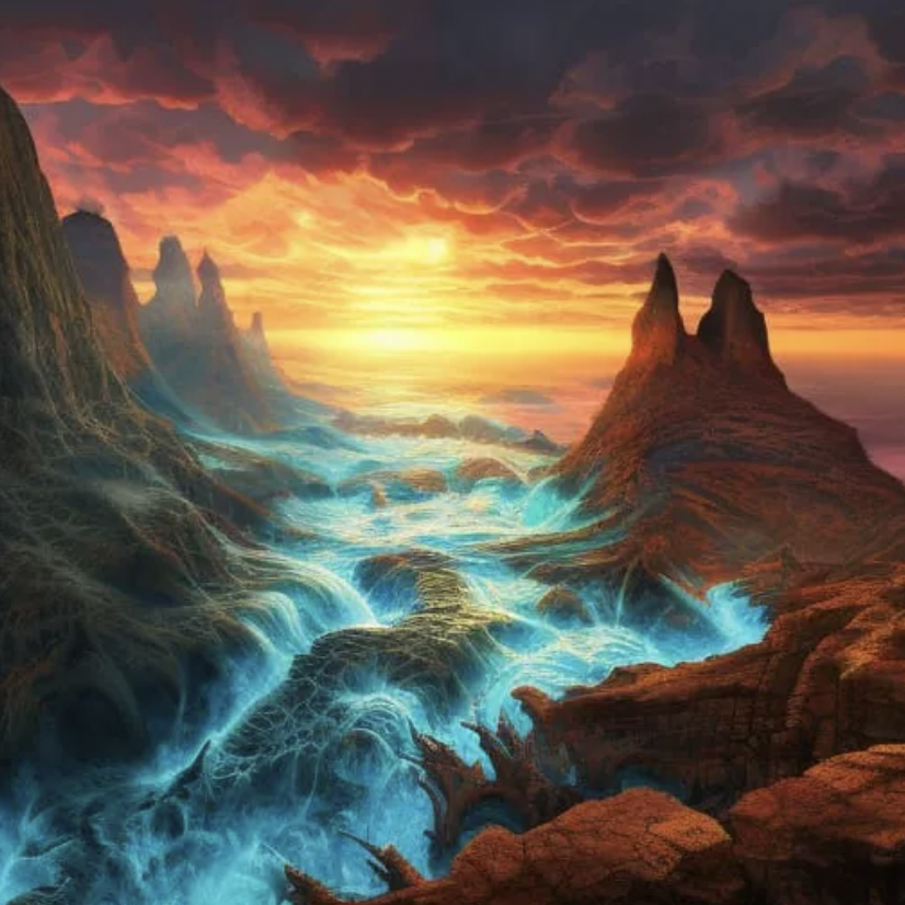 • award-winning unique and different alien portrait, A striking and wildly detailed Sunset, a masterpiece of epic proportions, digital illustration, digital artwork, hyperdetailed digital painting, unique composition, complex, 8k resolution concept art HDR, deep color Accents Compliment This Refined Interplay Of Colours, dynamic lighting
