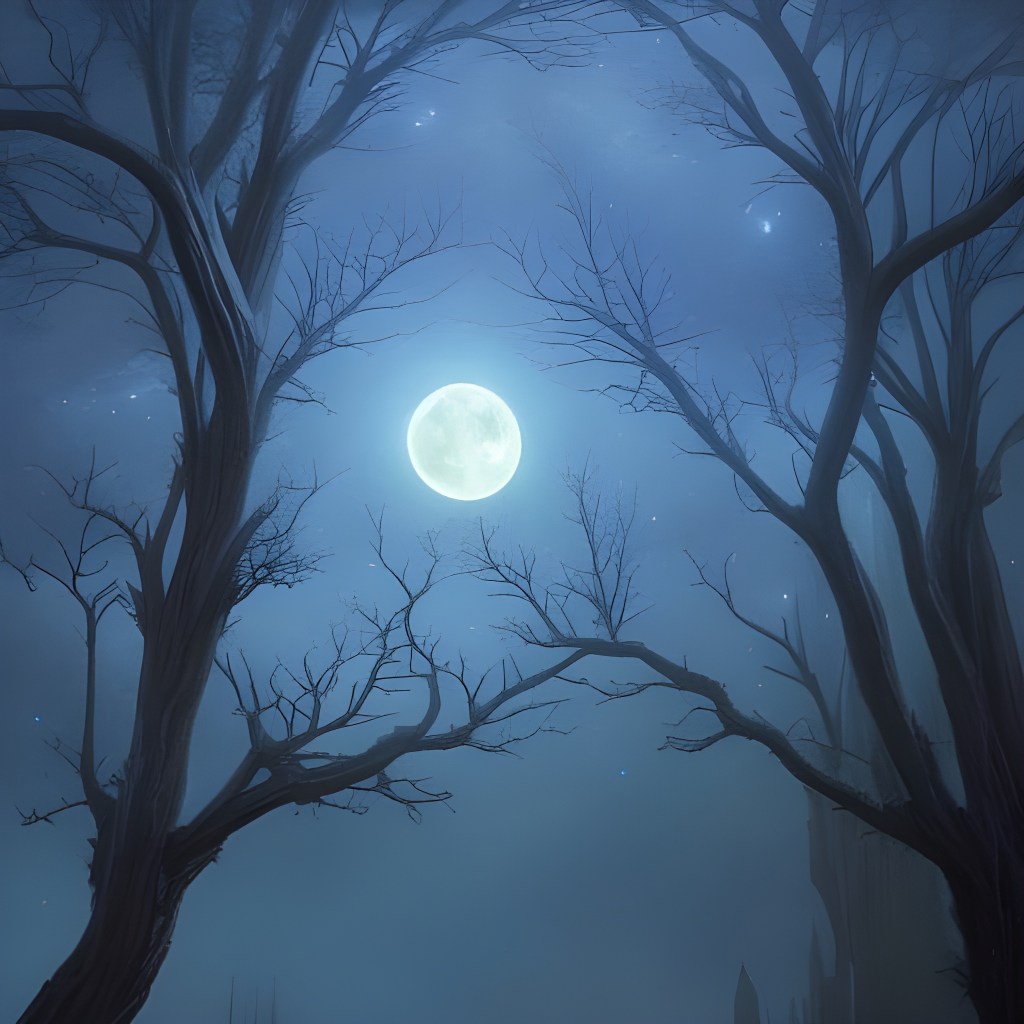 • hyperdetailed thrilling night tree, moon in the branches, cinematic brilliant multitude of brilliant stars, massive huge moon, lovely incandescent blue of the twilight sky, 12k resolution, detailed deep color oil painting, detailed matte painting, fantastical, splash screen, fantasy, trending on Artstation Unreal Engine 5, Eldritch by Greg Rutkowski