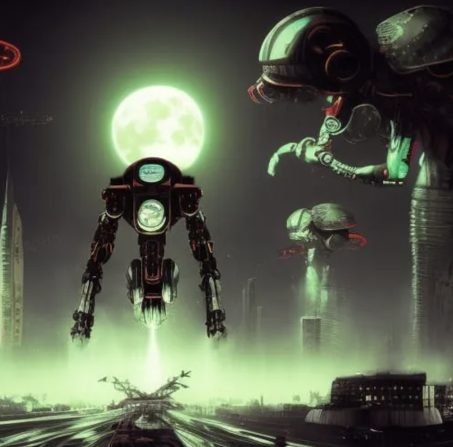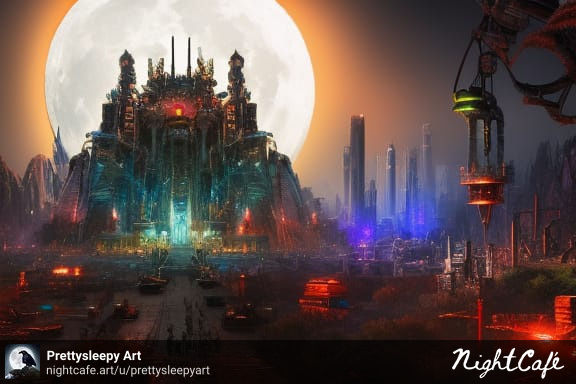 Prompt: hyperdetailed Metallica intense full moon savage futuristic graveyard, intricate visceral world, artgerm, art in the style of gustave bauman, 10k resolution, Epic cinematc masterpiece, WLOP, dynamic lighting Splash art detailed matte painting, deep color, fantastical, trending on Artstation Unreal Engine 5 (link)