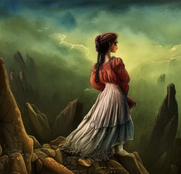• Highly detailed serene exquisite gypsy, cover art, CGSociety, ZBrushCentral, 64 megapixels, digital illustration, detailed background intricately detailed hyperdetailed renaissance painting, Caspar David Friedrich lyrical abstraction, split-complementary colors