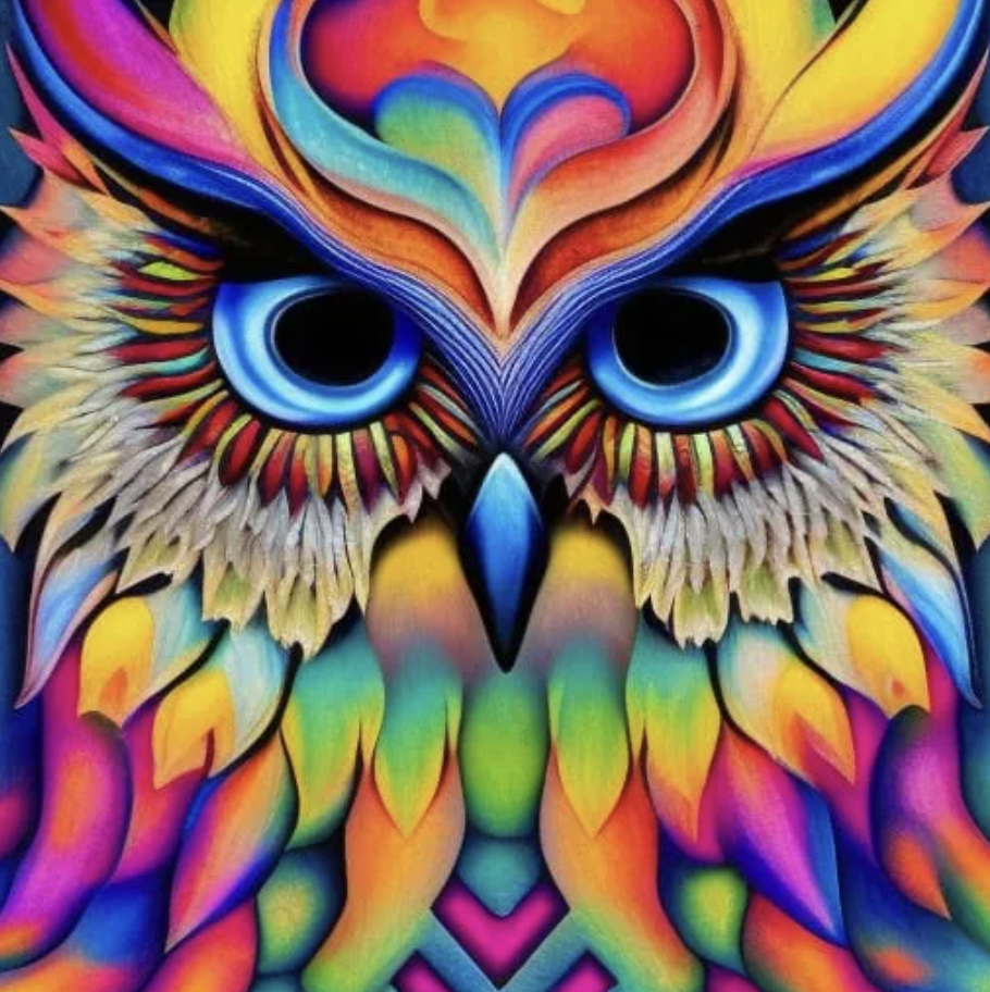 • true glory owl, Jean Metzinger Behance HD, psychedelic art elements colorful, intricately detailed, fluid perfect oil painting, boldly outlined illustration sharp edges, extravagantly detailed Venetian-hippie style 8k resolution