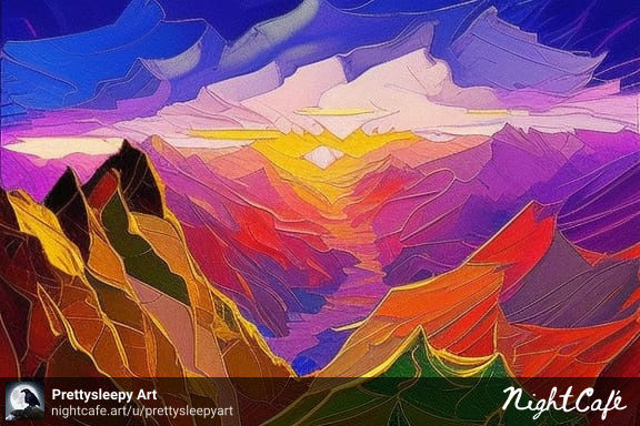 Prompt: Grandiose sunrise Hyperdetailed mountainscape in LSD art crazy mountain Graceful fantasy landscape fantasy art beautiful Artstation, 10k WLOP, Ethereal impressionist impasto painting Erin Hanson Rule Of Thirds (link)