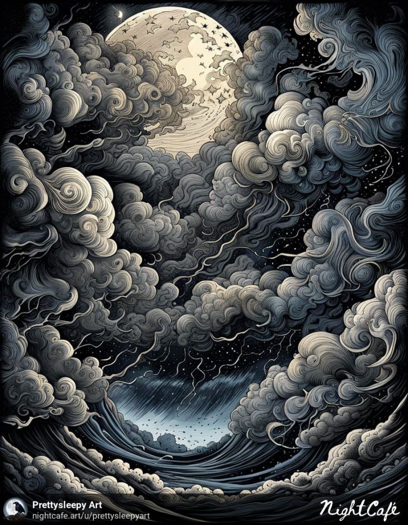 “Highly Detailed Ornemental. epic storm cloud with lightning and terrible weather. comic book art, perfect, smooth. European ink painting. hyperdetailed thrilling brilliant multitude of brilliant stars, massive huge moon, lovely incandescent resolution fantasy, trending on Artstation. William Blake art. Show your epic style.” Weight:1