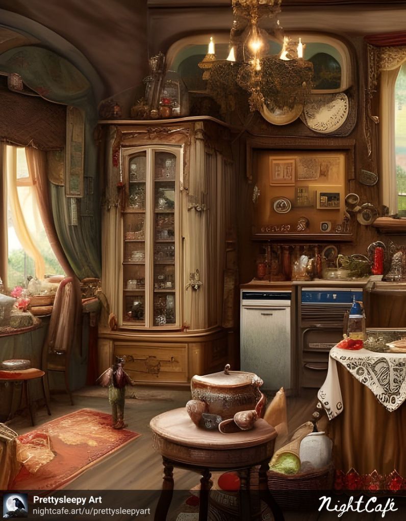 Comments: I just randomly typed in “princess, classical, opera, mary poppins, kitchen and sunshine” into the negative comment. Are you interested to see how that affected the results? If so, check out this image on Nightcafe where it just has the standard negative prompt, and all of the other settings are exactly the same.