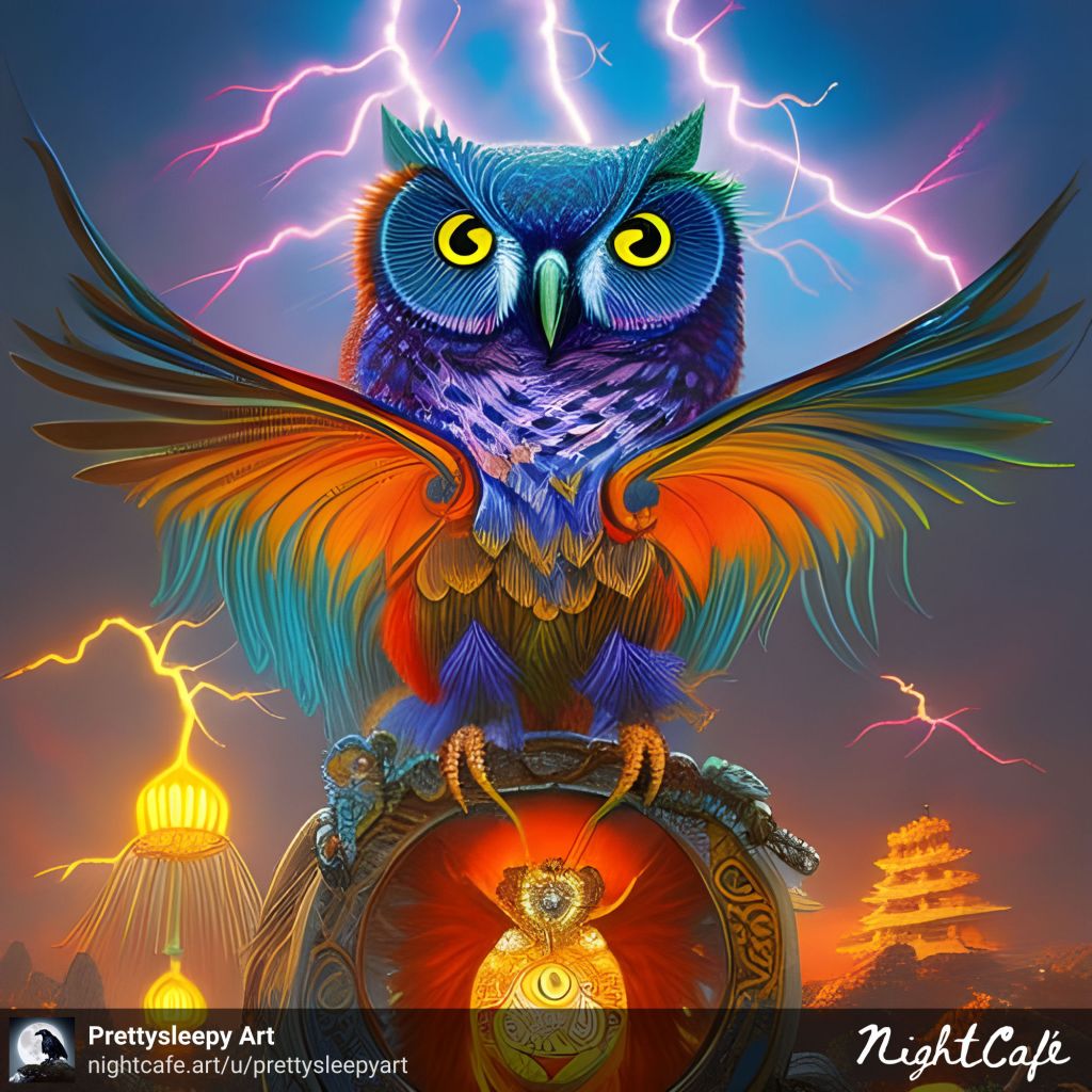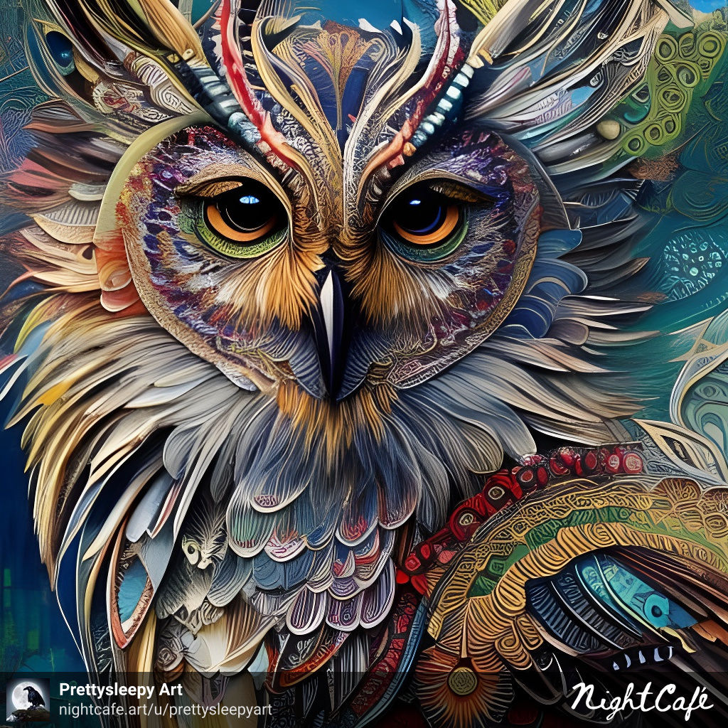 “Gorgeous Clouds around Mind-Boggling detailed owl, Symmetrical, Blaze Of Exquisitely Warm color Harmonies, astounding hyperdetailed oil painting, Blender And Photoshop, Mystical Flowers Cinematic Celestial Full Moon, 16k resolution, Thomas Kinkade, trending on Artstation detailed matte painting”