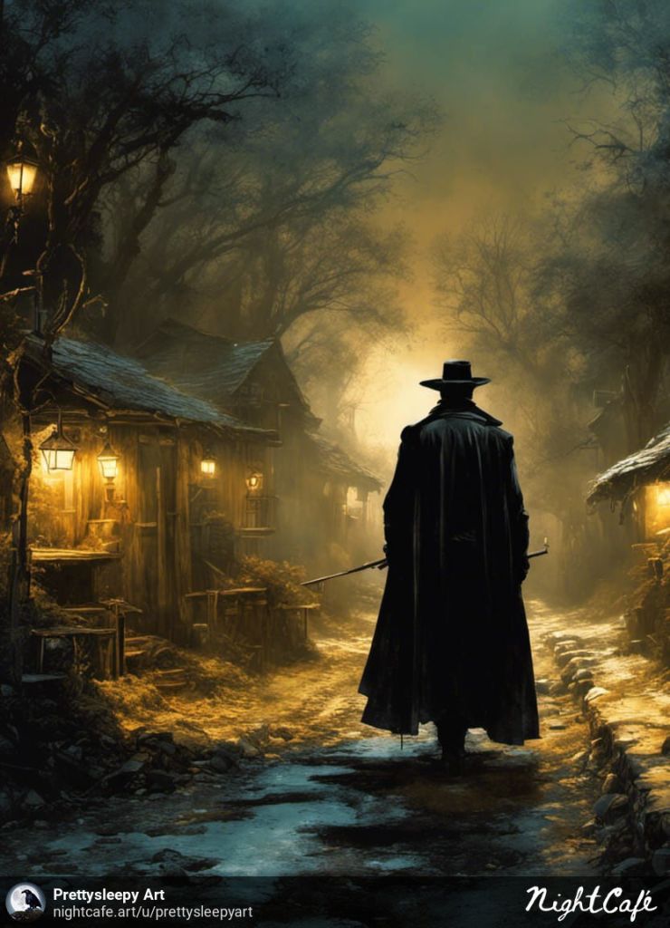 “handsome mysterious shadow-man in the village of sleepy hallow, Mark Brooks comic book art, perfect Jeremy Mann, digital art, detailed background, hyper-detailed, hyperrealistic, epic, cinematic, dramatic, color splash, high contrast, surreal : dreamy : fantasy, soft warm glow” Weight:3