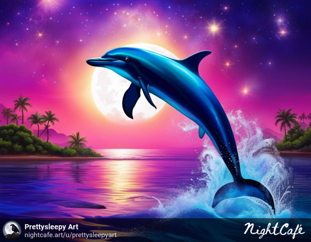 “Dolphin in the sea, Intricate illuminated cinematic meticulously detailed fantastical psychedelic mystical fortune-teller-style scene.” Weight:1