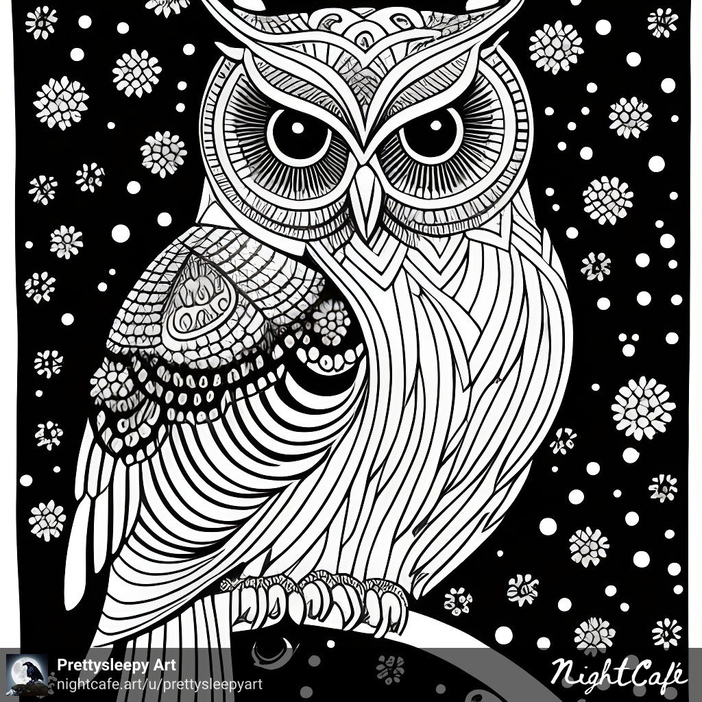 “owl coloring page. intricately detailed painting. European ink, thick detailed ink strokes outlined in white fir high contrast. cartoon. backlit, detailed cartoon background.” Weight:1