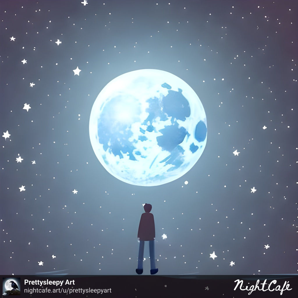 “moon watcher Cartoon-illustration-art. smooth clear details, digital art. perfect Sinister perspective. cinematic brilliant multitude of brilliant stars, massive huge moon, lovely incandescent blue sky.” Weight:1