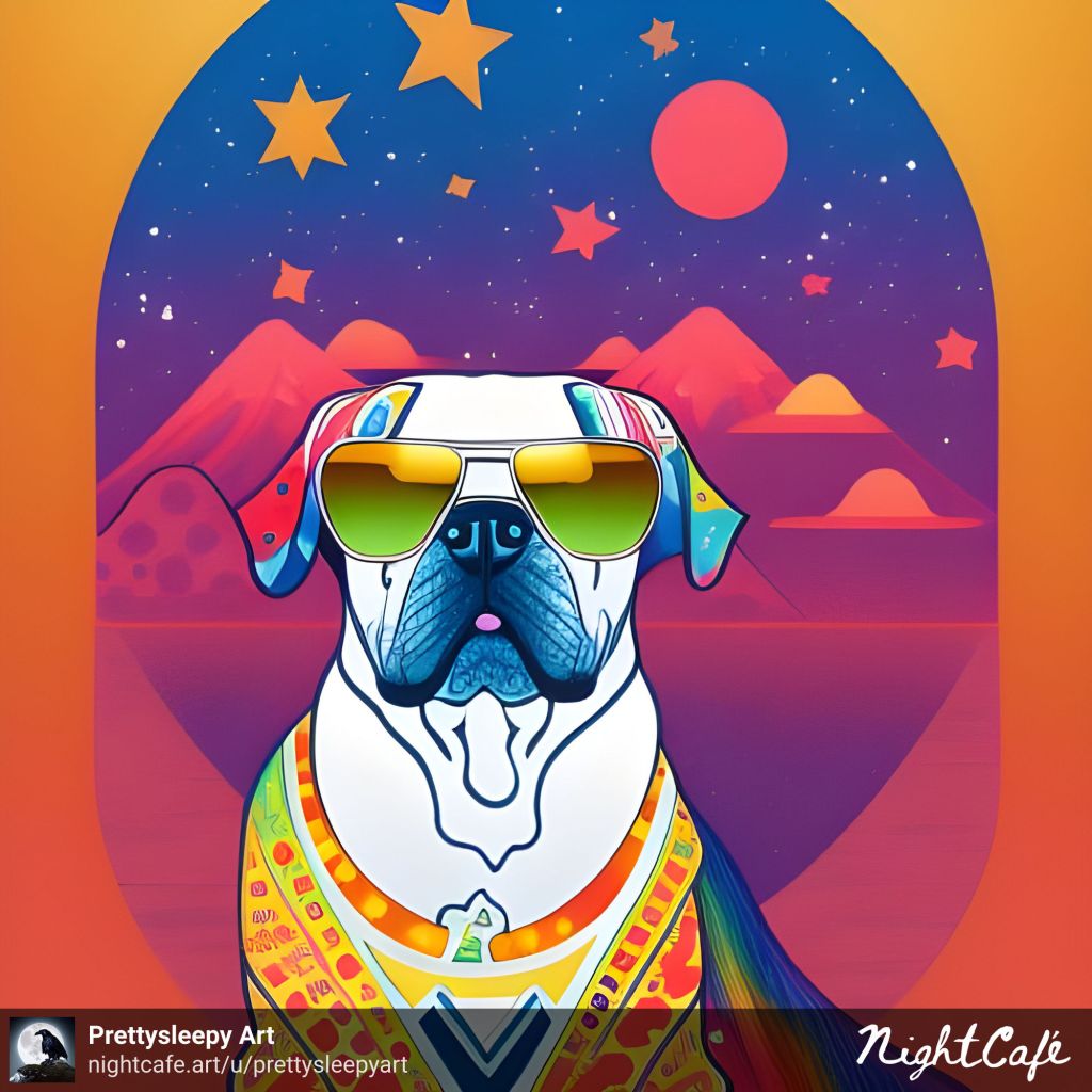 “A Dog Situation. cartoon. Color splash drip. Smooth illustration. Trending on Artstation. – Japanese art. illuminated, glowing Smooth cartoon-art-illustration. gradients. Huge beaming moon and brilliant stars.” Weight:1