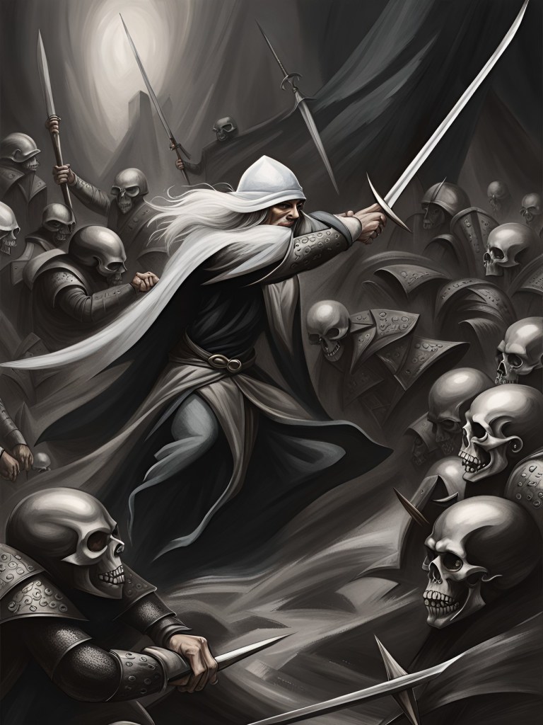 25. Magestic Battle Scene Lynd Ward, fantasy dark charcoal, skulls gothic. Alexander Milne Calder Amandine Van Ray Gandalf The White Wizard Fighting In A Majestic Battle Scene A Masterpiece; Splash Art By Wlop