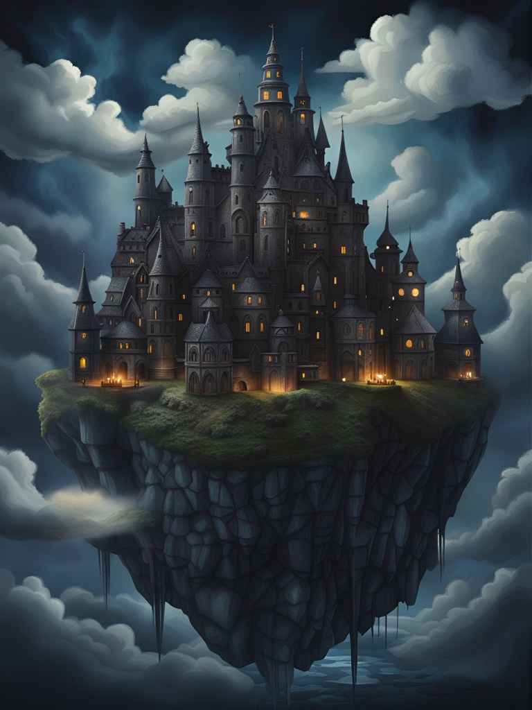 5. Dark castle-Floating Mystical City In The Sky Surrounded By Clouds
