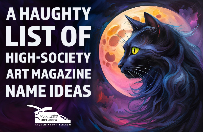 Here’s a list of thirty fictitious, believable names for high society art magazines, brought to life by ChatGPT. These names are purely a product of AI creativity, so please remember to double-check their availability before you use them. I generated this list for a book I’m working on, and was delighted with the results.
